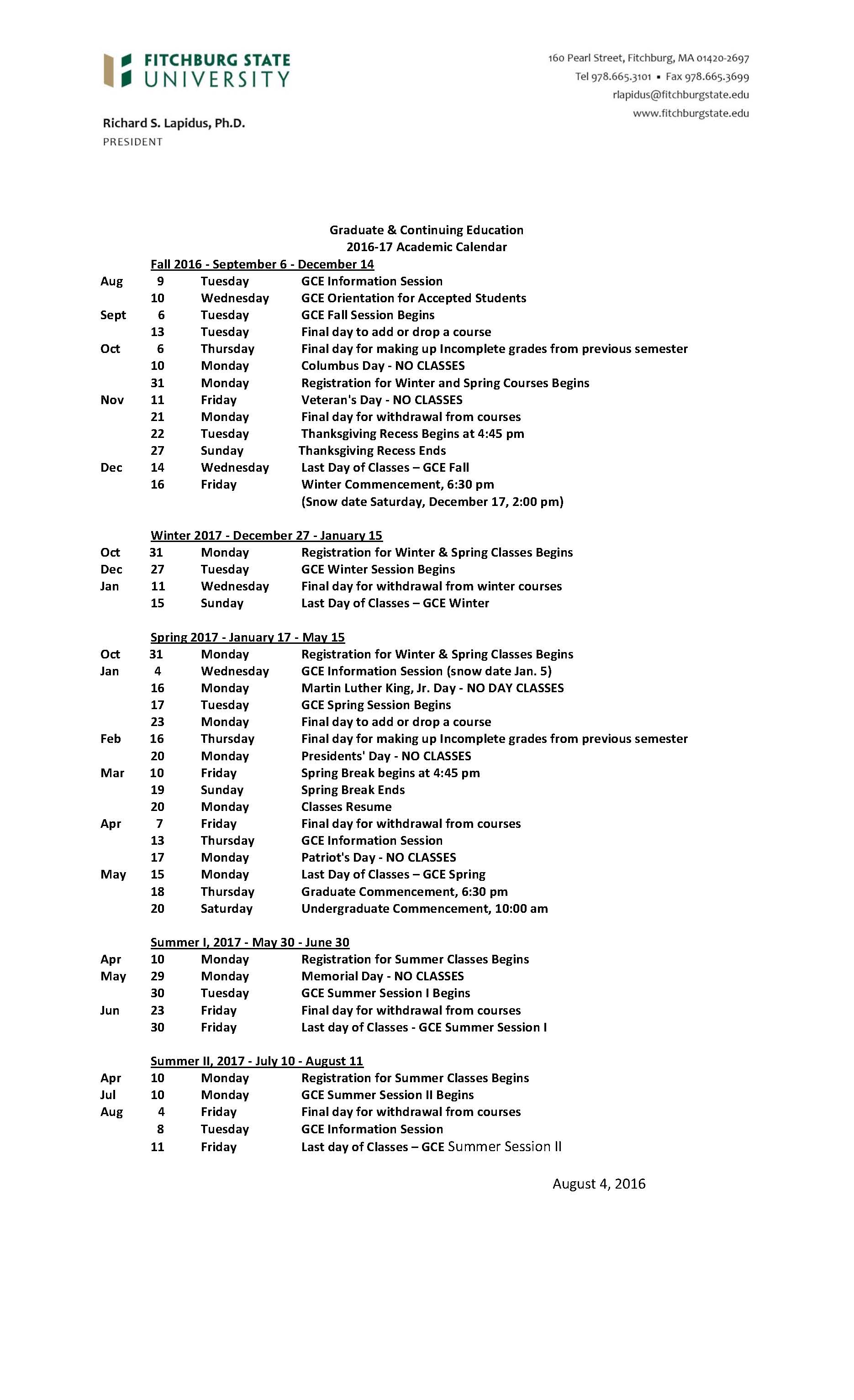 Source : www.fitchburgstate.eduAcademic Calendars Fitchburg State University Acalog ACMS™